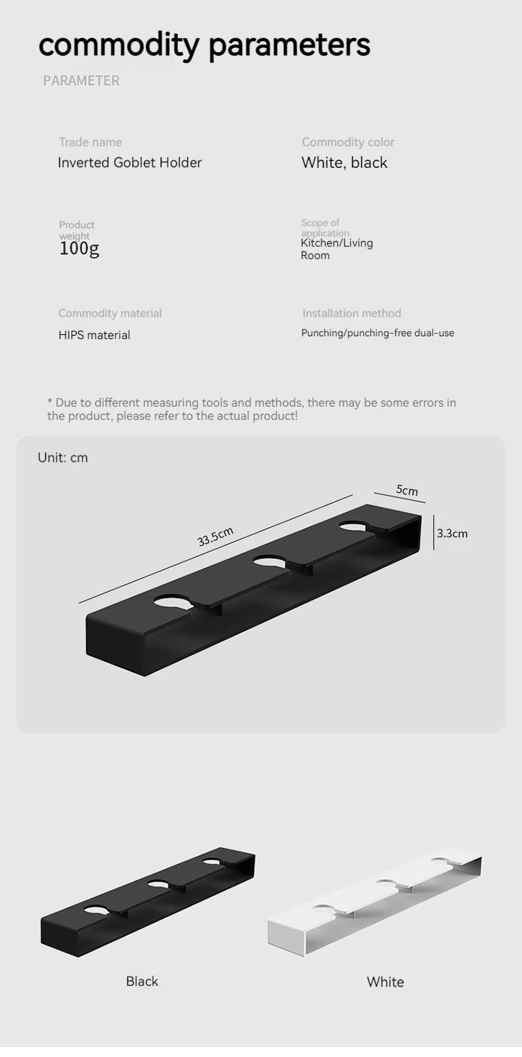 This punch-free goblet holder is crafted from high-quality, durable plastic, offering a practical and space-saving solution for organizing wine glasses in your kitchen or living room. Designed for easy installation without drilling, it adheres securely to smooth surfaces, keeping your goblets neatly arranged and within reach. Its modern, compact structure helps maximize cabinet or wall space while protecting glasses from damage. Lightweight, sturdy, and convenient, it adds both functionality and a clean, organized look to your home.
